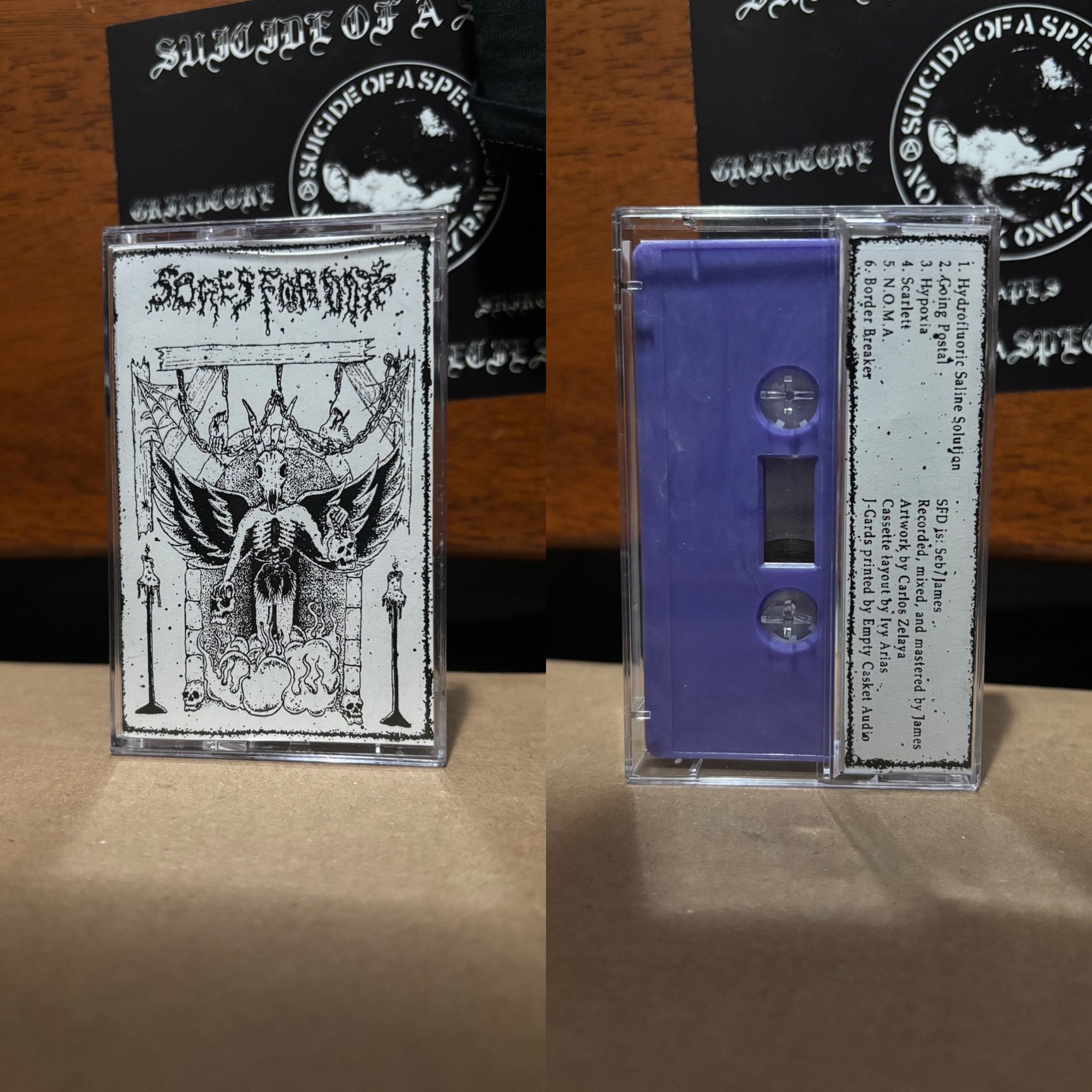 6 tracks full of grinding gore regurgitated by Sores For Days pressed on a nice looking purple tape.